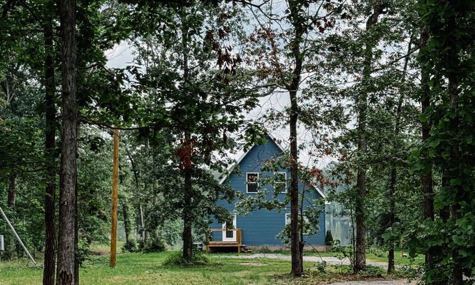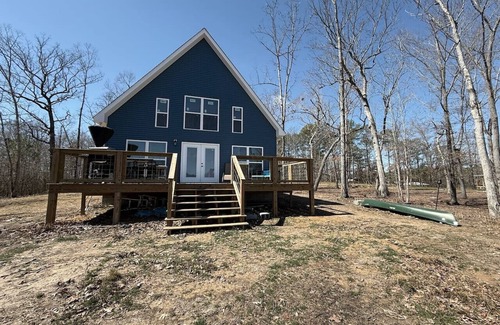 Escape to tranquility in this brand new A-frame home on Weiss Lake. Charming 3-bed, 2-bath retreat Sleeps 7-8. Perfect for families.
