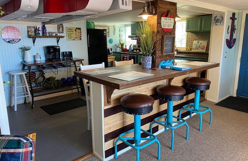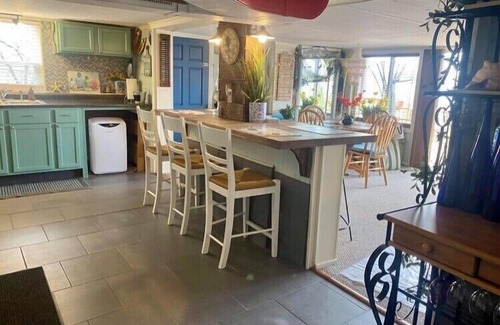 Semi-private and cozy in-law apartment in the lower level of our year-round lake front home. The space includes a full kitchen, bedroom with private 3 piece bathroom and a living/dining room combo. Queen bed, futon, and plenty of room for an air mattress. Step out from the apartment onto a large deck overlooking a 340 acre all sports lake. Amenities include use of two kyaks, dock, paddle boat, and fire-pit.