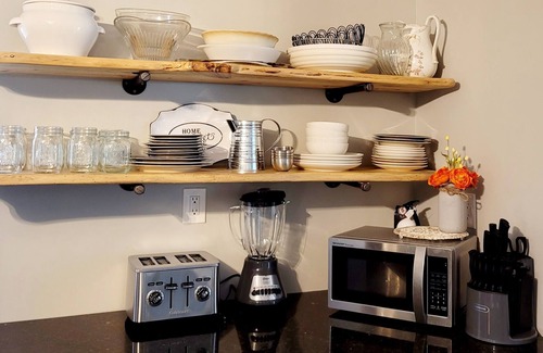 The cottage comfortable accommodates up to 6 guests, the kitchen will provide you with a coffee area, full kitchenware for all the cooks needs, your cleaning fee provides you with all the bed and bathroom linens, kitchen and bathroom essentials. The Smart TV will allow you to stream all your favorites and the wireless Wifi supports all your devices. The master bedroom will provide a small desk for students and those working remotely.