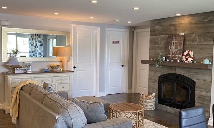 This is a great Cottage to relax and unwind with lots of Space and a beautiful Sunset view with large sliding doors both upstairs and downstairs. This Cottage sleeps 13 comfortably and a large entertaining area downstairs with a smart tv, an air hockey table, board games and wifi throughout the property. Enjoy cooking in our newly renovated kitchen with a large fridge, a farmhouse sink and lots of storage space for food. Kitchen utensils, pots/pans, plates, cups and dishwasher are available for use. We have a large kitchen table as well as a patio set on the deck to enjoy your meals. Natural gas BBQ is available on the deck as well. This large outdoor space is perfect for running around, swimming in the lake, fishing off the dock and playing games. An inflatable pool and slip and slide are available for use as well as a water table and toys for the kids. The large fire pit with 10 Muskoka chairs is perfect for those who love hanging out by the fire and making s’mores. This a great getaway spot for any season to make memories with family and friends!