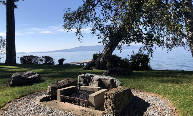 Located in a forest on 2 1/2 acres on the east shore of Flathead Lake. The property has 240 feet of lakefront: the cottage is approximately 300 feet from the lakefront. The lakefront has a fire pit and wood which is available to the tenants for their use. The boathouse provides a large covered patio area and is located next to the lake; a 60 foot dock is available for swimming in the same location. Glacier National Park is a day trip away.