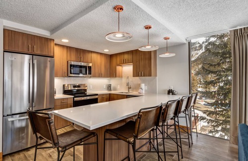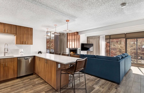 The condo comes with everything you need for icy cocktails or great homemade meals. Enjoy the fruits of your labor with the warmth of the wood fireplace while taking in the beautiful view.
