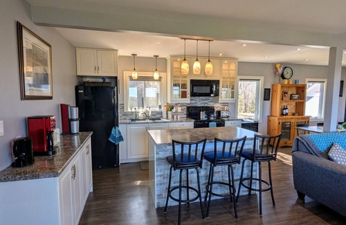 Inside, the fully equipped kitchen has all the essentials for home-cooked meals, and the spacious open-concept living area provides a warm and welcoming space to relax. With three comfortable bedrooms and two full bathrooms, there’s plenty of room for everyone to spread out and unwind.