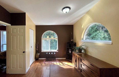 Welcome to our quiet piece of paradise, located on the southern edge of Pender Harbour. Nestled off the highway the roomy but cozy upper floor suite is perfect for a quiet getaway. Inside you will find large bright kitchen,separate living room/dining area with wood stove,large master bedroom with adjoining sitting room,spacious 2nd bedroom with private 1/2 bath.Enjoy the outdoor covered deck, furnished including bbq, perfect for viewing wildlife.Our magical 2 acre property also includes 2 outdoor picnic areas with views of a waterfall and the relaxing sound of a babbling creek. Pender Harbour area boasts many fresh lakes all within a 30min. drive and many spots to also access the ocean. You can enjoy your holiday touring the beautiful coast or have a relaxing holiday without leaving the property. We are a 5min.drive to Madeira Park which has most amenities. 20min.drive to Sechelt,45-60min.drive on average to Langdale ferry,25-35min.to Earls cove ferry. We look forward to hosting you!