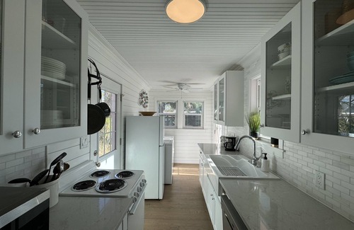 Charming, light-filled 1938 bungalow, surrounded by tropical gardens, steps to Sunshine Beach. Offering both original detail and current amenity, this one-of-a-kind bungalow experience is located on Treasure Island near John's Pass in St Petersburg Florida. Situated on the gulf side of Gulf Boulevard, it makes for a most relaxing and convenient beach experience, all day and every day. No need to cross a busy intersection to reach the white sand and waves, just step out your back door to two conveniently located boardwalks, one on either side.