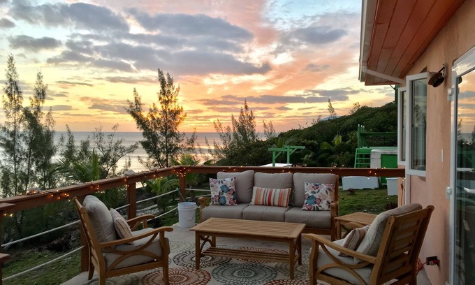 SUNSHINE☀️HOUSE Is a magical seaside cottage, perfectly situated offering privacy, tranquility and a magnificent panoramic view of the Caribbean. You have the ability to see sunrise and sunset right from it's large deck. The cottage is beautifully decorated and the large deck features a sofa, chairs, chaise lounges and a countertop with stools perfect for outdoor dining.