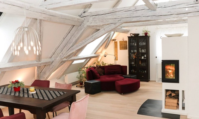 A magnificent, large luxury apartment in a 500 year old former farm in the countryside - something very special. Luxury and tranquility paired with perfect internet access, sauna and fire pit in the 2000sqm garden for leisurely barbecues.