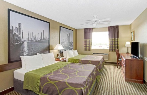 Located off Interstate 94 and across the street from Six Flags Great America, this Gurnee hotel features an indoor swimming pool. Each guest room offers free WiFi. A microwave and refrigerator are provided in every room at Super 8 Gurnee. Guests can enjoy the cable TV or make use of the in-room hairdryer during their stay. A grab and go breakfast is offered daily at Gurnee Super 8. For convenience, 24-hour reception services are offered and coffee is provided in the lobby. Launderette facilities are on site. Gurnee Mills Outlet Mall can be reached in 2 minutes’ drive. The Great Lakes Naval Base is 9 miles away.