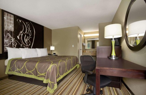 Featuring a bagged breakfast with coffee or juice, this pet friendly hotel is located off Interstate 22 just 7 miles from the Elvis Presley Birthplace and Museum. Free WI-Fi is provided. A small refrigerator and tea- and coffee-making facilities are found in each simply decorated room at the Super 8 Tupelo. Every room is equipped with a work desk and cable TV. Laundry facilities and a 24-hour reception are available to the guests of the Tupelo Super 8. Guests also have access to a business center and vending machines. Please note that the outdoor pool is closed until May 2022 The Bancorp South Arena is less than 15 minutes’ drive from the hotel. The Toyota Motor Manufacturing Plant is 10 miles away.