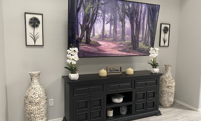 "The Orchid at Westgate" Beautifully renovated and decorated for those with the most selective of tastes. A short walk away from the Westgate Entertainment District, this home is perfect for sports enthusiasts, concert goers, and those who love a variety of dining options. Enjoy world class golf, do a little shopping, or try your luck at the casino, this home is close to it all. Take the kids to the pool, or just hang out on the private patio and grill burgers for the family, we've got you covered. Stainless steel appliances and a full size kitchen make this home feel like home. With highspeed internet included, you can stream your favorite shows on the 65 inch flat screen TV, or catch up on those business emails while relaxing on the comfy leather couch. And when it's time to rest, enjoy the comfort of our cooling gel, foam mattresses in all 3 bedrooms.