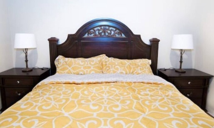 Master bedroom en suite: King size bed with two night stands and big walk-in closet. (The master bathroom tub has been re-faced, but the coating is a little bit peeled off. You may find stains on the bathtub. Those are not removable by any kind of chemicals, But has been cleaned and sanitized very time before guest check-in).