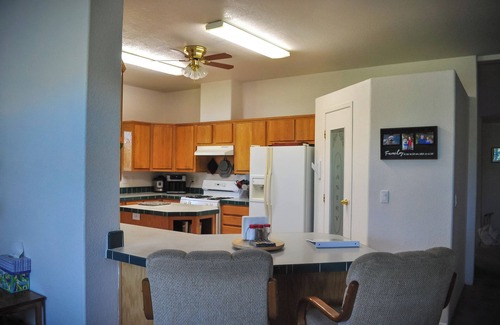In the front room, a desk is set up for you to work while staying with us, along with a printer for your use during your stay. In that front room, you'll find two bookcases filled with games, books, coloring books, crayons, and puzzles. Please enjoy them during your stay.