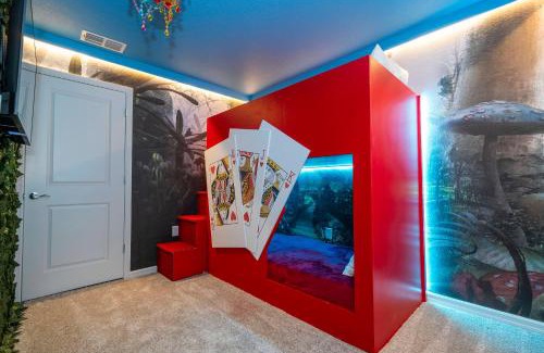 Super Mario 10bed home w Free Resort Access 16295 offers accommodations in Orlando, 12 miles from Disney's Wide World of Sports and 13 miles from Disney's Boardwalk. The air-conditioned accommodation is 12 miles from Disney's Blizzard Beach Water Park. Free Wifi is available throughout the property and Disney's Animal Kingdom is 11 miles away. The vacation home features 10 bedrooms, a fully equipped kitchen with a dishwasher and an oven, a washing machine, and 8 bathrooms with free toiletries. Towels and bed linen are available in the vacation home. The property has an outdoor dining area. Super Mario 10bed home w Free Resort Access 16295 also features an outdoor swimming pool and a spa facilities for guests to relax in. Guests can enjoy the indoor pool at the accommodation. Disney's Hollywood Studios is 13 miles from Super Mario 10bed home w Free Resort Access 16295, while Walt Disney World is 13 miles from the property. Orlando International Airport is 29 miles away.