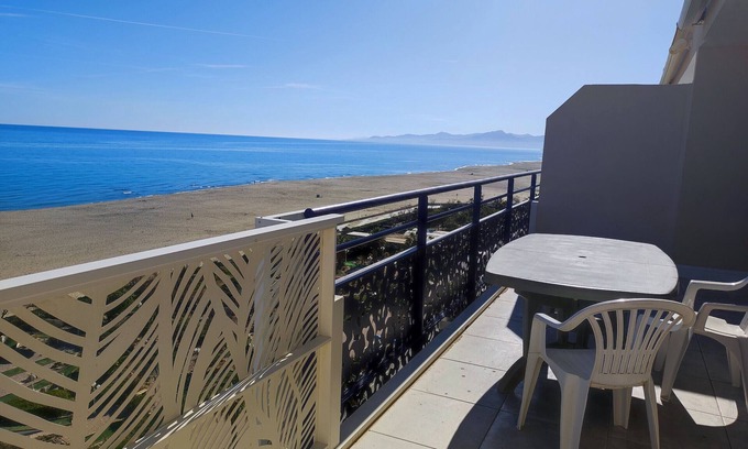 CANET PLAGE, FRONT LINE, Superb 3-room apartment, fully equipped for 6 people, on the 7th and top floor of a luxury residence with elevator:
