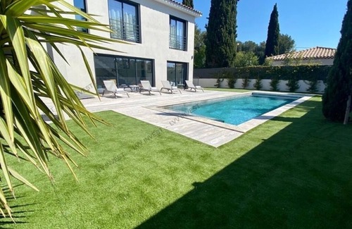 Superb new villa with heated pool, 300 m from the beach, in Sanary - Bandol is located in Sanary-sur-Mer. Superb new villa with heated pool, 300 m from the beach, in Sanary - Bandol provides accommodation, featuring Private Pool, Sports/Activities, Entertainment, among other amenities. This Villa features Private Pool, Sports/Activities, Entertainment, to make your stay a comfortable one.