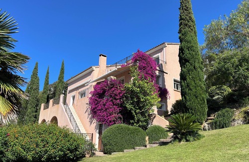 7 minutes walk from Roya beach and 5 minutes by car from the city center, a 270 m² villa on three levels with three terraces, including an independent pool level.