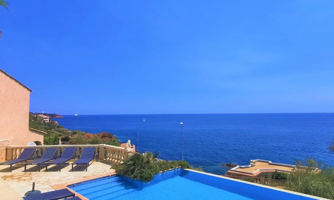 Superb villa with sea view, heated swimming pool, sandy beach 200 m away is located in Antheor. Superb villa with sea view, heated swimming pool, sandy beach 200 m away provides accommodation, featuring Parking, Pet Friendly, Designated Smoking Area, among other amenities. This Villa features Parking, Pet Friendly, Designated Smoking Area, to make your stay a comfortable one.