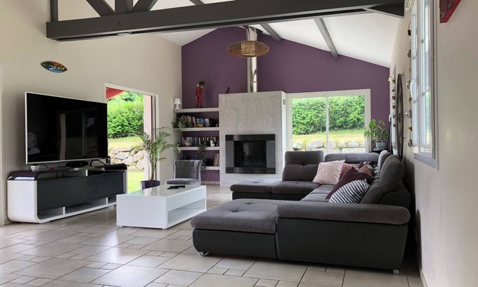 Located in Saint-Pee-sur-Nivelle, this 5-bedroom, 1-bathroom villa lets you experience it all. Fans of nature and the outdoors will love being 16 minutes by car from Bay of Biscay and 33 minutes from Cote des Basques. If you'd like to explore the area, you can make the 12-minute drive to Le Train de La Rhune or the 25-minute drive to St-Jean-de-Luz Beach.