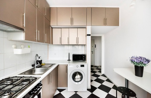 Superior Metro Centrum Apartment offers practically furnished spaces, i.e. a living room with a sofa bed, a bathroom, a functional bedroom with a large and comfortable bed, a dressing room and a fully equipped kitchen. Guests have a variety of amenities at their disposal, including free Wi-Fi, hairdryer, refrigerator, dishwasher, washing machine, iron and much more. A spacious balcony with views of Warsaw's skyscrapers completes the overall experience.