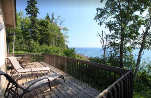 All knotty pine with great views of Lake Superior from this cute four season home located on a very peaceful and private setting. This wonderful home has appliances, beds, furniture, deck furniture, furnace and super deck. Everything you need for the best in restful vacations.