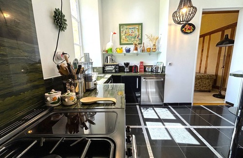 * The kitchen is perfectly fitted with fridge/freezer, dishwasher, professional 5 gaz ring cooker, electric oven, hob, microwave. The range of crockery, glass, cutlery and cooking utensils is very generous.