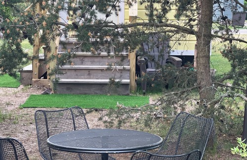 Painted a sunny yellow that mirrors the warmth inside, SUPERIOR SUNRISE is one of two tiny homes nestled in a peaceful neighborhood, just blocks from the shores of Lake Superior. Set on its own private lot, the home offers convenient parking, soft outdoor lighting, a picnic table, and a firepit stocked with wood and kindling—perfect for cozy evenings by the fire. A shared gas grill is also available for outdoor meals under the stars.