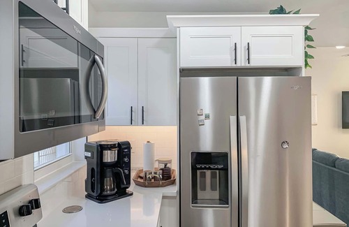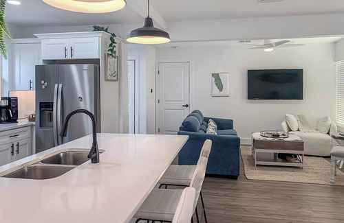 Enjoy bright, airy interiors with modern coastal decor, a fully equipped kitchen, and cozy outdoor seating. The home and kitchen are thoughtfully stocked for your group's comfort. All kitchen appliances are brand new, and the kitchen is fully stocked for cooking and dining. Enjoy the comfort of this stylish home, or venture out for nearby boating, fishing, kayaking – it’s all here in this well-appointed home by the Eau Gallie River in central Melbourne.