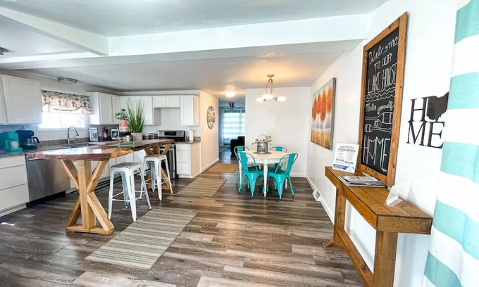 Welcoming, nautical Cottage, just a block from Lake Erie, a private sandy beach and lakefront park is perfect for a getaway to experience all that Lake Erie shores and islands has to offer. Enjoy the convenience of home while experiencing Lake Erie, Cedar Point, Put in Bay, Kelley's Island, downtown Sandusky, Kalahari, Summit Motorsports Park, Sports Force Parks, Sheldon's Marsh, Old Women's Creek, Thomas Edison Birthplace and so much more.
