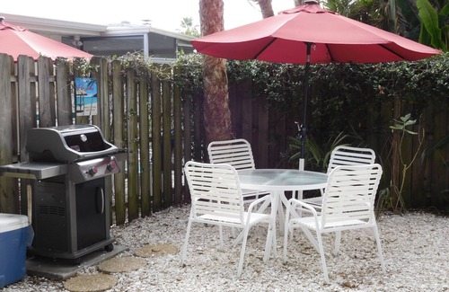 Enjoy my private dock to fish, crab, or launch a kayak if you like. At sunset, stroll up to the beach to watch the amazing sunsets every night. Go enjoy oysters and a beer at Siesta Key Oyster Bar. My favorite is the clam chowder at Captain Curt's near the south bridge... it is awesome. There are lots of great restaurants and shops all over the village. They are all just a short walk or quick ride by bike. There is outdoor patio furniture and a gas grill all under a huge oak tree. This is island living at its best. Note. THIS COTTAGE IS RENTED AT LEAST ONE WEEK OR MORE. PLEASE NOTE : PRICES QUOTED INCLUDE ALL UTILITIES AND CABLE. DISCOUNTED LONG TERM RENTALS DO NOT.Studio Cottage