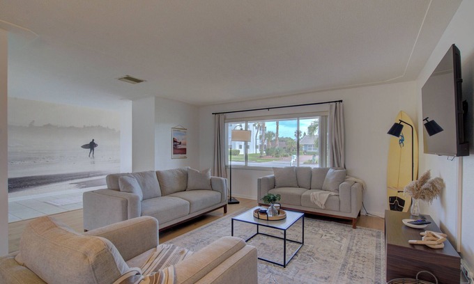 Welcome to Surfers Corner! Escape to paradise in this clean, spacious 4-bedroom (5 bed), 2-bathroom waterfront home in beautiful Cocoa Beach, Florida! Perfect for families and groups, this stylish retreat offers breathtaking water views with active wildlife, boat dock, fire pit, pool table, dart board, and more - almost daily sightings of manatees right off of the dock! - as well as a prime location just minutes from the beach, Downtown Cocoa Beach, and Cocoa Beach Pier.