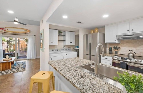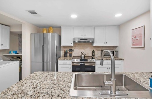 LAUNDRY: We offer laundry machines in the unit with starter laundry pods + dryer sheets, iron and ironing board and some basic cleaning supplies for your convenience.