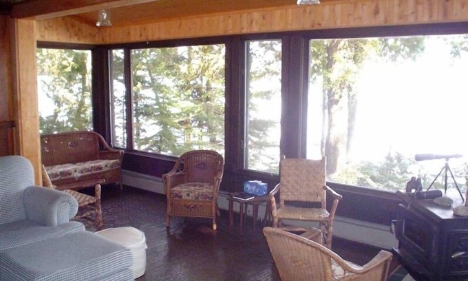 There is a deck on the eastern side of the home which is great for outside relaxing, evening star gazing, and watching the loons, water fowl, birds, deer and many small animal species that are in abundance.
