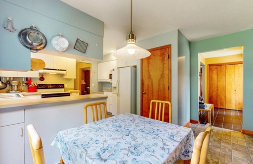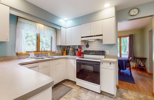 The house features an ample kitchen with a breakfast cove overlooking colossal white pines, a separate dining room, and a living room. The three bedrooms sleep six comfortably (eight if you’re cozy), and also include a travel baby crib. There is plenty of outdoor parking.