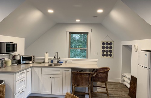 Bonus Pine Nut or Pine Cone Guest Suites (separate rental fee)- 50 feet away across a shared parking area in a wooded setting with distant water views, on 2 levels, A/C throughout and a total of 2BR/2BA with added overflow sleeping for a total of 8 beds. Equipped with 300 mbs Wifi throughout, 2 large screen Smart Roku TVs, W/D and a balcony with wooded views for enjoying morning coffees or to work in an incomparably peaceful setting. Rent all 3 spaces together for safely-distanced, comfortable gatherings of extended family and friends. Dine/gather together outdoors for sunset meals on the deck, bonfires and beach activities. Each space may be rented on its own. See guest suites at www.homeaway.com/2169689.