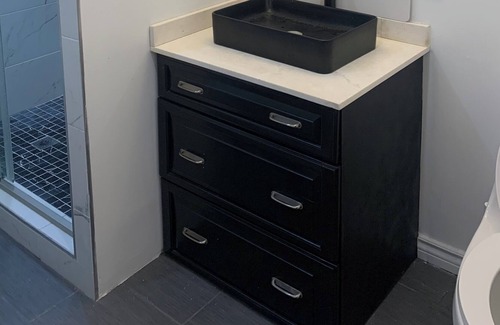 This house has a private bedroom with a king bed and private bathroom with shower and jacuzzi in the same bedroom.