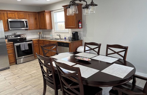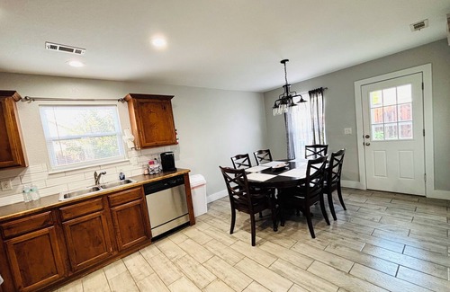 This charming home in Fayetteville offers 2 cozy bedrooms with one king bed and one queen bed, perfect for a relaxing stay with your family. Enjoy the convenience of amenities like WiFi, a large TV screen and sound bar, and a washer and dryer, the kitchen is perfect for a great family dinner for any occasion. The bathroom features a tub for a relaxing soak after a day of exploring. A fabulous retreat for guests looking for a comfortable and cozy space, in a quiet neighborhood, five minutes from the University of Arkansas and fabulous restaurants. A great place to call home while you're away, we hope you enjoy your stay.