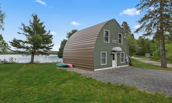Sweet Spot is a one-of-a-kind retreat on Haley Pond that features distinctive Quonset-style architecture paired with a warm, natural wood interior. Thoughtfully designed to stand out while blending seamlessly with its peaceful surroundings, this lakeside home offers unforgettable charm inside and out.