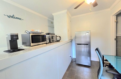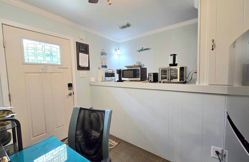 The Sweet Suite is a relaxing escape in a gorgeous neighborhood just two lots from Pensacola Bay. You will catch a glimpse of the water as you come and go from your private entrance! This suite is attached to a larger house and has a private entrance which is just minutes from Pensacola Beach. The suite boasts a Queen memory foam bed with a cooling gel topper, speedy Wi-Fi, patio, separate kitchenette w/microwave, full fridge, toaster, air fry countertop oven, Keurig, & work desk. Bedroom w/Roku TV, full closet, extra pillow and blanket plus beach gear for two (Chairs, umbrella, cooler & beach towels) Central air + a Mini-Split for your comfort. You'll have access to the entire guest suite which is private to you. It is sealed off from the rest of the house with double doors & has added sound-proofing. Note: There is no kitchen sink. The bathroom sink does have a tall faucet. Motion flood light with cameras & sound recordings are located on each exterior corner of the house as well as ring doorbell cameras at other entrances, not yours. Video or live feed is only accessed by the homeowner if there is a safety issue/booking concern.