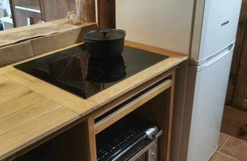 At your disposal: Kitchen equipped with a refrigerator and freezer, a 3-burner induction hob, a mini-oven, a sink, an Italian coffee maker and a filter coffee maker, a teapot, and everything you need for cooking. Sleeping arrangements: 1 large double bed (160x200cm) with a high-quality mattress, and 2 separable ‘mountain corner’ bunk beds with blackout curtains. A travel cot for babies under 3 years old can be added on request.