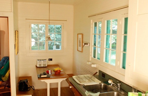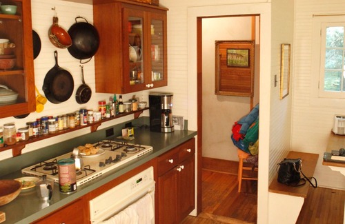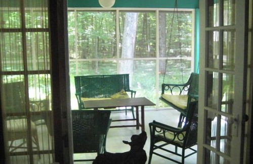 Our cottage is cozy and comfortable. The eat-in kitchen with breakfast nook is well-equipped for cooking; a charming pantry leads to a dining room with French doors opening to the woods and grilling area. Relax with family around the living room fire place, window seat, and cozy rattan furniture. Opening from the living room is a screened-in porch where you can relax in total privacy with a good book. The cottage has wireless internet service and a video screen. Private association tennis courts are a quick stroll away. There is a children’s playground near the tennis courts.