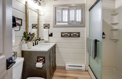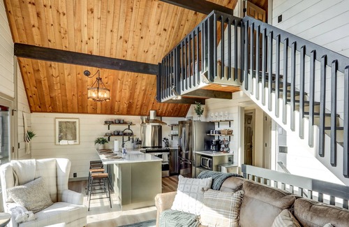 This sweetest of cabins is close to Hershey, Lancaster, and Harrisburg, but you wouldn't know it. As soon as you enter you feel as if you're in a quiet cabin in the woods miles away from the nearest town. Specifically designed and furnished with families in mind, you'll find games, kitchen items, and blankets ready to help you feel right at home. My favorite feature: the loft’s view out the wall of windows in the living room with a chair right there in the perfect spot to enjoy it!