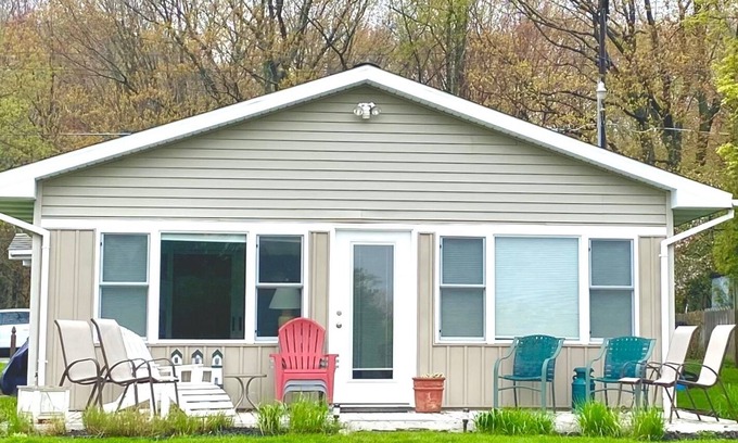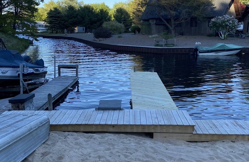 Bright sunny cottage on the channel on the southern end of lower Hamlin Lake in Ludington Michigan. 5 minute drive to the Ludington State Park and less than 10 minutes to downtown Ludington. Two bedrooms, two baths, large great room with dining table, kitchen island with seating, sun porch with game table and sofa, chair and additional dining table. Picnic table and gas grill for your enjoyment. Outdoor fire ring to enjoy! Dock for your boat and small beach for relaxing or sunbathing. There are three total boat parking areas, but some may be used by Cottage Family members. If bringing a boat, please let us know so we can make sure there is adequate access for your boat. Boat slips may be accessed by others during your stay--please inquire with us if this is an issue!