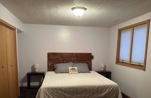 The Swenson Suite is in the lower level of our split level home located in a safe neighborhood, walking distance to the Douglass Trail and park, and the city bus route. Guests can enjoy their privacy with their own large living room, kitchenette, full bathroom with double sinks and heated floors, and 2 bedrooms. One bedroom has a king size bed and the other bedroom has a queen size blow up mattress (we will get ready for you if needed). Laundry room is available if needed. We also have off street parking! If the sound of dogs and children will bother you- this is not the place for you. We try our very best to keep it down, but it doesn’t always go our way!