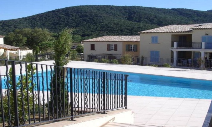 Villa 40 Clos de Vignes in La Mole in southern France is a fully equipped, air conditioned, two bedroom town house to accommodate five guests.1 double bedroom and 1 triple bedroom. The lovely properties on the complex are built in true Provencal style, set in landscaped gardens among the forests and vineyards of this picturesque region.Accommodation: Spacious, tastefully decorated lounge/dining area with French style furniture A full internet service and TV receiving BBC channels and a CD/DVD player is provided free of charge for your enjoyment. Bring along your favourite's for the rare times you will might be inside. Fully equipped kitchen, including fridge/freezer, dishwasher, fan oven, ceramic hob and washing machine. Downstairs wc. Two bedrooms with fitted wardrobes. Full bathroom with Shower. The property has a lovely patio area complete with patio furniture. On site is a Private residents outdoor swimming pool set amidst landscaped outdoor living space..