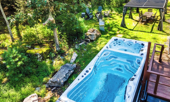 SwimSpa | Lake | Fish | Kayak | Hike | Firepit is located in Eldred. SwimSpa | Lake | Fish | Kayak | Hike | Firepit provides accommodation, featuring Pool, TV, View, among other amenities. This Cottage features Pool, TV, View, to make your stay a comfortable one.