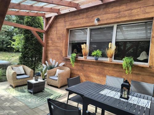 Featuring a garden, Sworny Bór- całoroczny offers accommodations in Swornegacie. This property offers access to a terrace and free private parking. On clear days, guests can head outside to enjoy the vacation home's outdoor fireplace or simply kick back and relax. With free Wifi, this 2-bedroom vacation home features a flat-screen TV, a washing machine, and a fully equipped kitchen with a dishwasher and oven. Towels and bed linen are available in the vacation home. There's also a seating area and a fireplace. A mini-market is available at the vacation home. The area is popular for cycling, and free use of bicycles is available at the vacation home. The vacation home has a picnic area where you can spend the day outdoors.