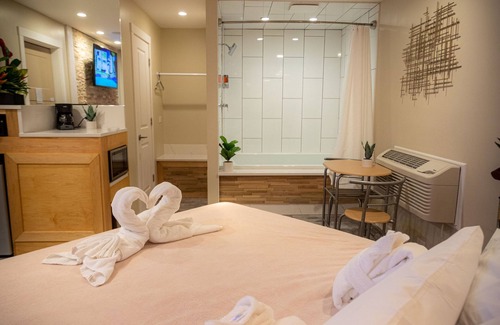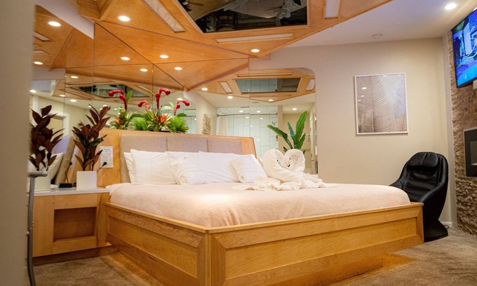 Sybaris Pool Suites offers 13 air-conditioned accommodations with fireplaces and iPod docking stations. Accommodations offer separate sitting areas. Beds feature premium bedding. A pillow menu is available. 42-inch Smart televisions come with premium cable channels.