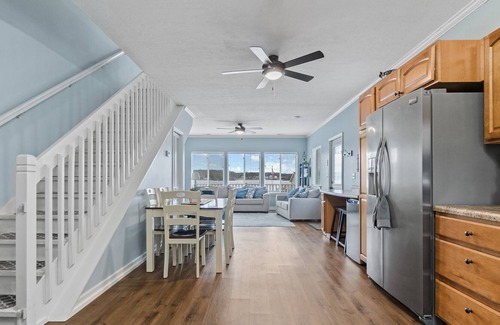 All bedrooms and a dedicated work space are on the second floor providing quiet privacy. Multiple steps down to the lake. Fully furnished kitchen. Washer and dryer on site. Gas grill available for use. Private dock. Parking for up to two vehicles.