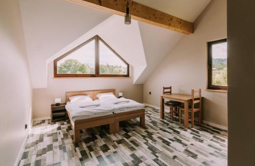 Providing mountain views, Szumny Dwór - pokoje z łazienkami in Wetlina provides accommodations, a garden, a shared lounge and a terrace. Units feature a fully equipped kitchenette with fridge, microwave, coffee machine and electric tea pot. Some units have a dining area and/or a balcony. Both a ski equipment rental service and a bicycle rental service are available at the lodge, while skiing and cycling can be enjoyed nearby. Polonina Wetlinska is 7 miles from Szumny Dwór - pokoje z łazienkami, while Chatka Puchatka is 8.5 miles away. Rzeszów-Jasionka Airport is 93 miles from the property.