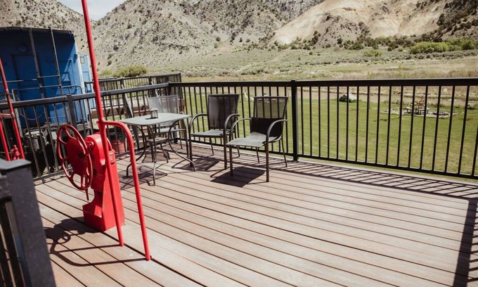 1 Queen Bed,1 Fold Down Couch, Kitchenette, Microwave, coffee maker, mini fridge, flat screen TV, Direct TV, deck with patio furniture.